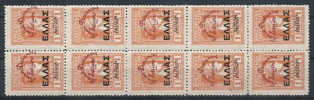 Lot0970 - ΕΛΛΑΔΑ 1914 Νέες χώρες, Σάμος, Γενική Διοίκησις Σάμου(Ι) με πρόσθετη επισήμανση 1 λεπτό σε δεκάδα **/bl10
