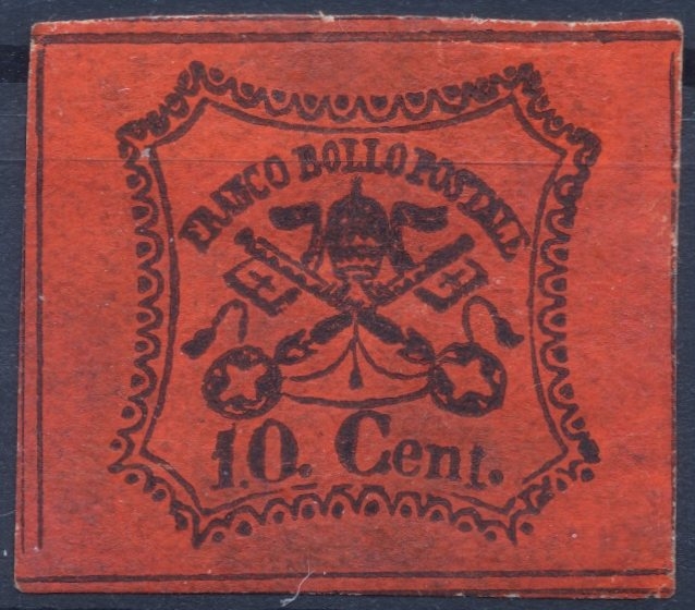Lot1823 - Ιταλία Παπικό Κράτος 1867, 10 cents, υπογεγραμμένο για τη γνησιότητα από Paolo Cardillo, κατάλογος Sassone No 17 ☉
