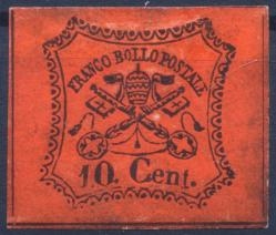 Lot1824 - Ιταλία Παπικό Κράτος 1867, 10 cents, υπογεγραμμένο για τη γνησιότητα από Paolo Cardillo, κατάλογος Sassone No 17 ☉