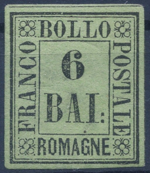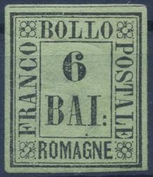 Lot1825 - Ιταλία Romagna Παπικό Κράτος 1859, 6 BAI, χωρίς γόμμα, υπογεγραμμένο για τη γνησιότητα από Paolo Cardillo, κατάλογος Sassone No 7 *