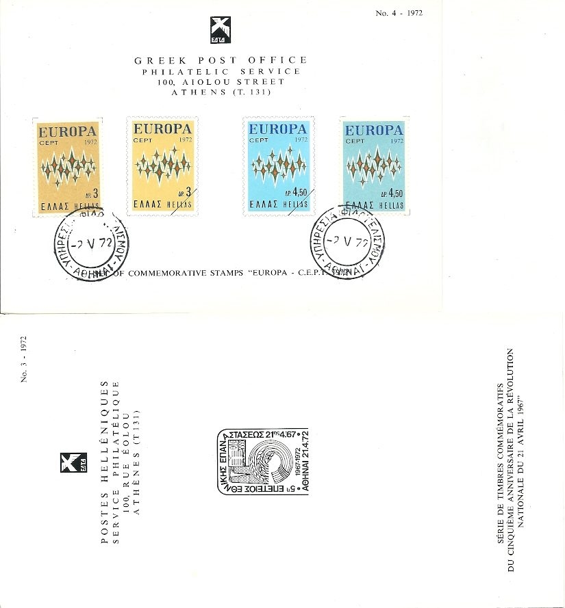 Lot1150 - ΕΛΛΑΔΑ 1972-1976 5ετία πλήρης με prospectus και επικολλημένα γραμματόσημα πλήρων σειρών
