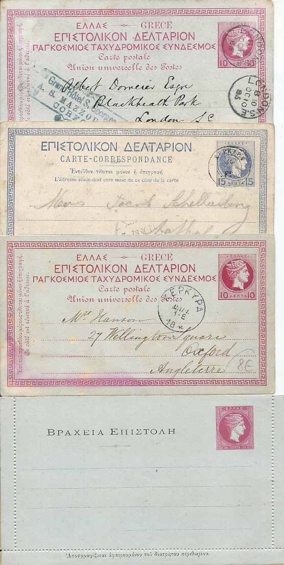 Lot1363 - ΕΛΛΑΔΑ, 3 ταχυδρομικά δελτάρια με Μεγάλες κεφαλές και μία βραχεία επιστολή