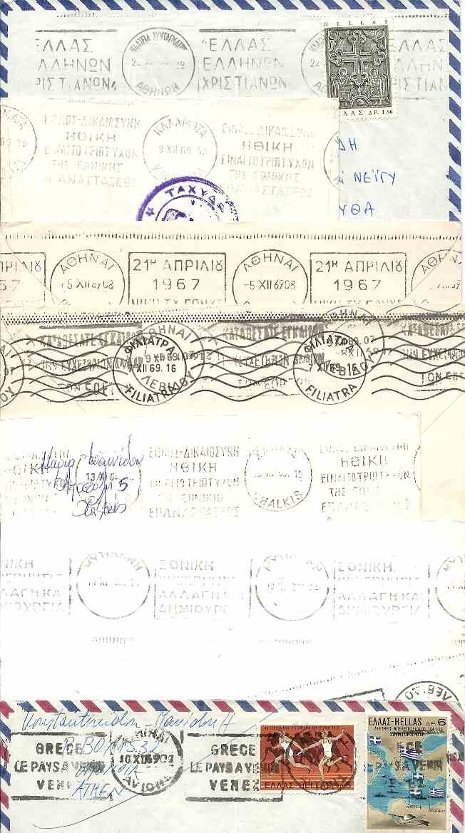 Lot1365 - ΕΛΛΑΔΑ, λαχνός με 41 φακέλλους με ατέρμονες σφραγίδες-συνθήματα περιόδου 1969