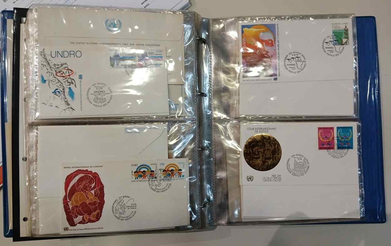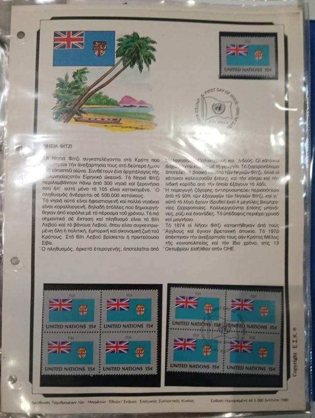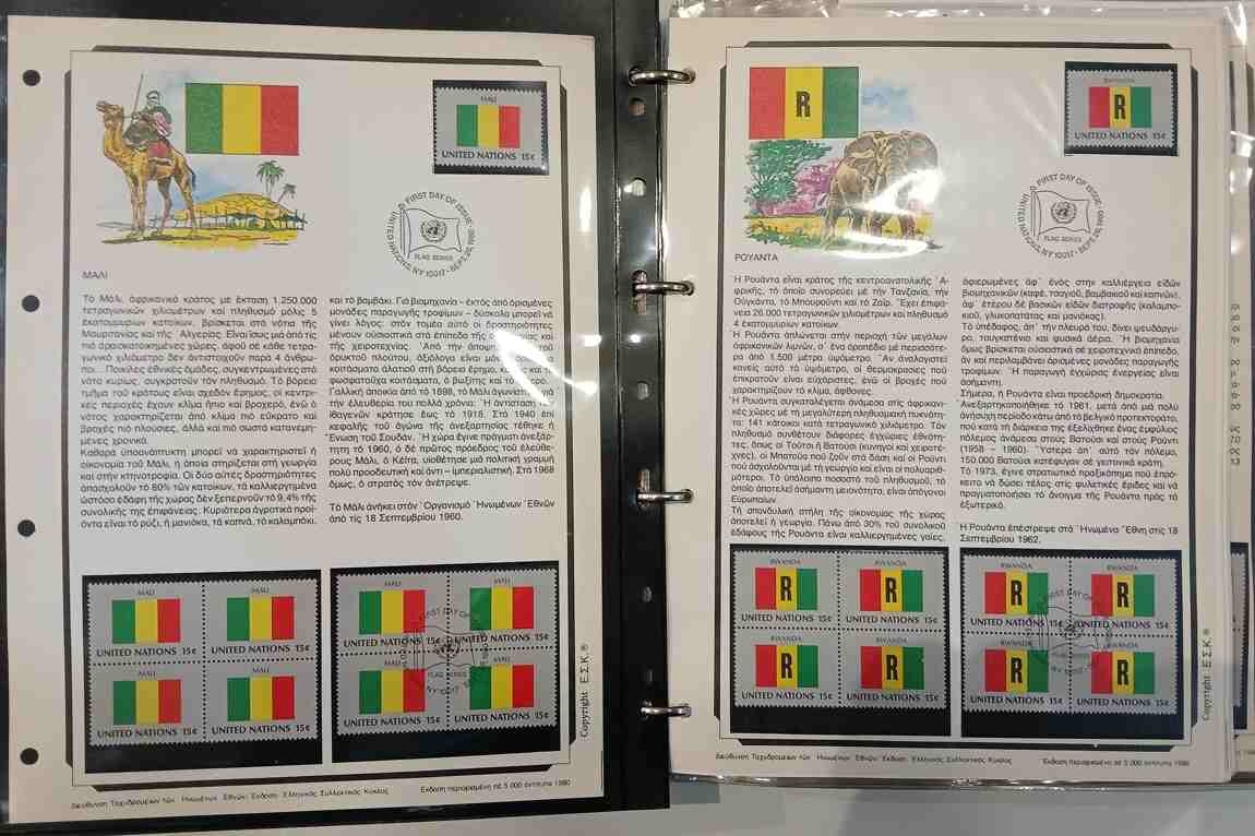 Lot2685 - Συλλογή με 90 φακέλλους με γραμματόσημα του ΟΗΕ μαζί με 32 φακέλους κα καρτέλες με σημαίες του κόσμου, γραμματόσημα του ΟΗΕ και περιγραφή του Ελληνικού Συλλεκτικού Κύκλου