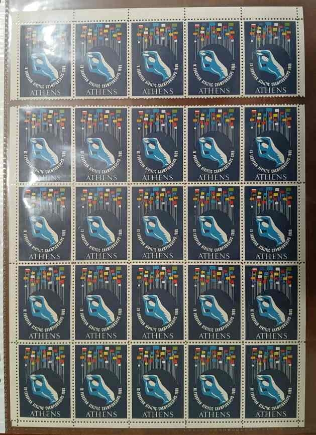 Lot2069 - ΕΛΛΑΔΑ Φύλλο 25 τεμαχίων για το IX Ευρωπαϊκό Πρωτάθλημα Αθλητισμού, 1969. Στην αγγλική γλώσσα. Το φύλλο είναι κομμένο σε 2 μέρη