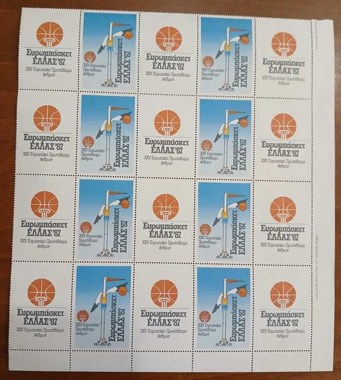 Lot2072 - ΕΛΛΑΔΑ Block 20 τεμαχίων για το Ευρωμπάσκετ 1987. Στην ελληνική γλώσσα