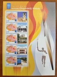 Lot2108 - ΕΛΛΑΔΑ Φύλλο με 5 ζεύγη προσωπικών γραμματοσήμων για τη Διέλευση της Ολυμπιακής Φλόγας από τις πόλεις Πρέβεζα, Αγρίνιο, Κόρινθος, Πάτρα και Μαραθώνα, 2004
