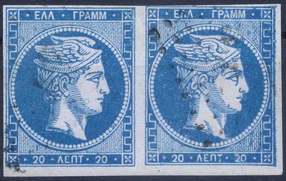 Lot0104 - ΕΛΛΑΔΑ 1862-1867 20 λεπτά μπλε σκούρο (deep blue), ζευγάρι ☉/bl2