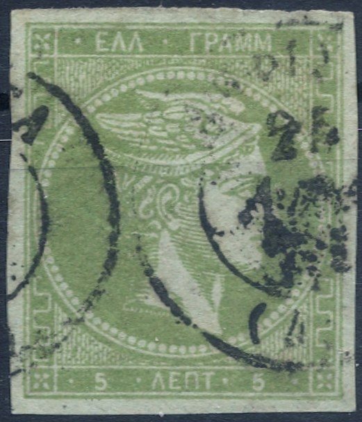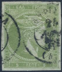 Lot0172 - ΕΛΛΑΔΑ 1871-1876 5 λεπτά κιτρινοπράσινο (yellow green) ☉