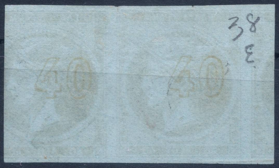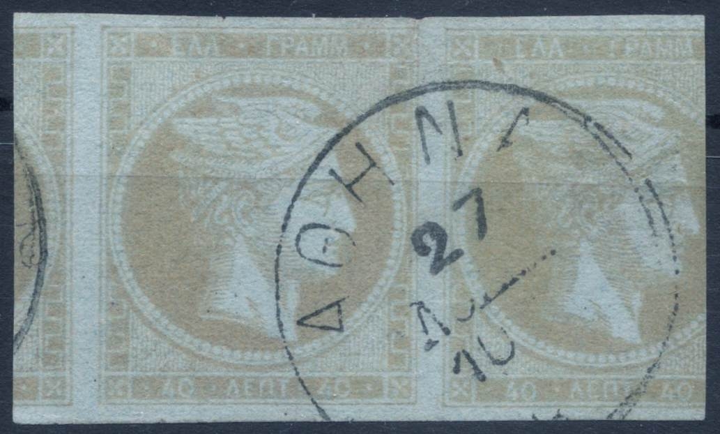 Lot0200 - ΕΛΛΑΔΑ 1871-1876 40 λεπτά άτονο ελαιοπράσινο σε μπλε (dull olive green on blue), ζευγάρι ☉/bl2