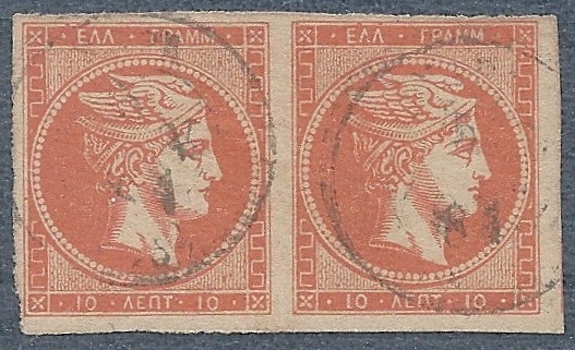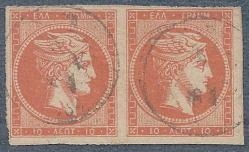 Lot0241 - ΕΛΛΑΔΑ 1875-1880 10 λεπτά ζευγάρι με ανάποδο 0 και στα δύο και απέχοντες αριθμούς ελέγχου ☉