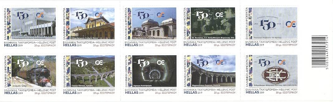 Lot0767 - ΕΛΛΑΔΑ 2019 τευχίδιο 10 αυτοκόλλητων γραμματοσήμων 150 χρόνια Ελληνικοί Σιδηρόδρομοι **