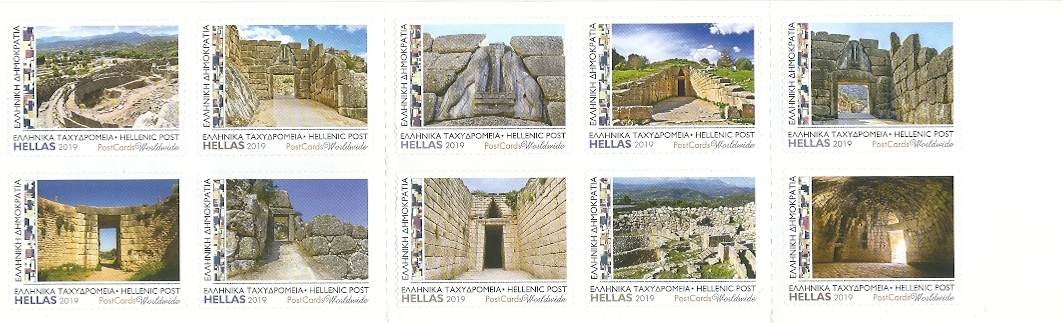 Lot0768 - ΕΛΛΑΔΑ 2019 τευχίδιο 10 αυτοκόλλητων γραμματοσήμων αρχαιολογικός χώρος Μυκηνών **