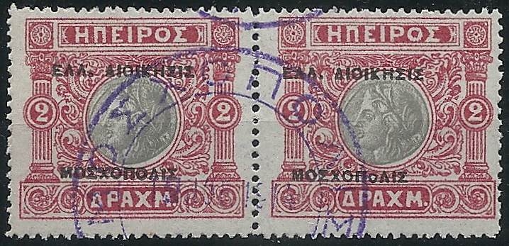 Lot0858 - ΕΛΛΑΔΑ 1914, Νέες χώρες, Ήπειρος, έκδοση Μοσχόπολης, με επισήμανση 'ΕΛΛΗΝΙΚΗ ΔΙΟΙΚΙΣΙΣ' ζεύγος 60Α και 60Αα ☉
