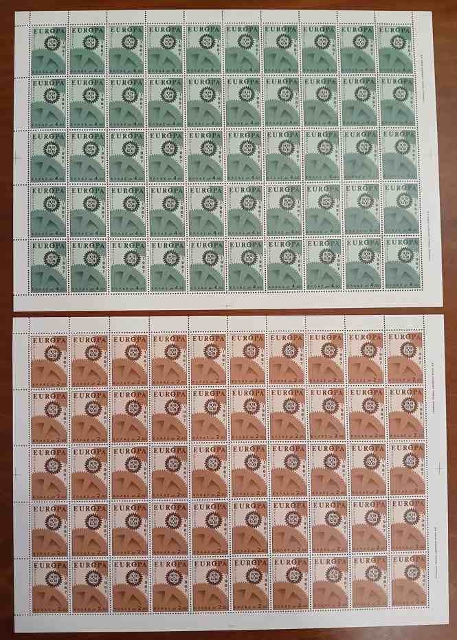 Lot0988 - ΕΛΛΑΔΑ 1967 πλήρης σειρά σε φύλλα των 50 γραμματοσήμων έκδοση Europa Cept **