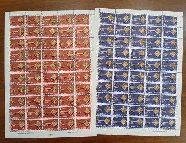 Lot0990 - ΕΛΛΑΔΑ 1968 πλήρης σειρά σε φύλλα των 50 γραμματοσήμων έκδοση Europa Cept **