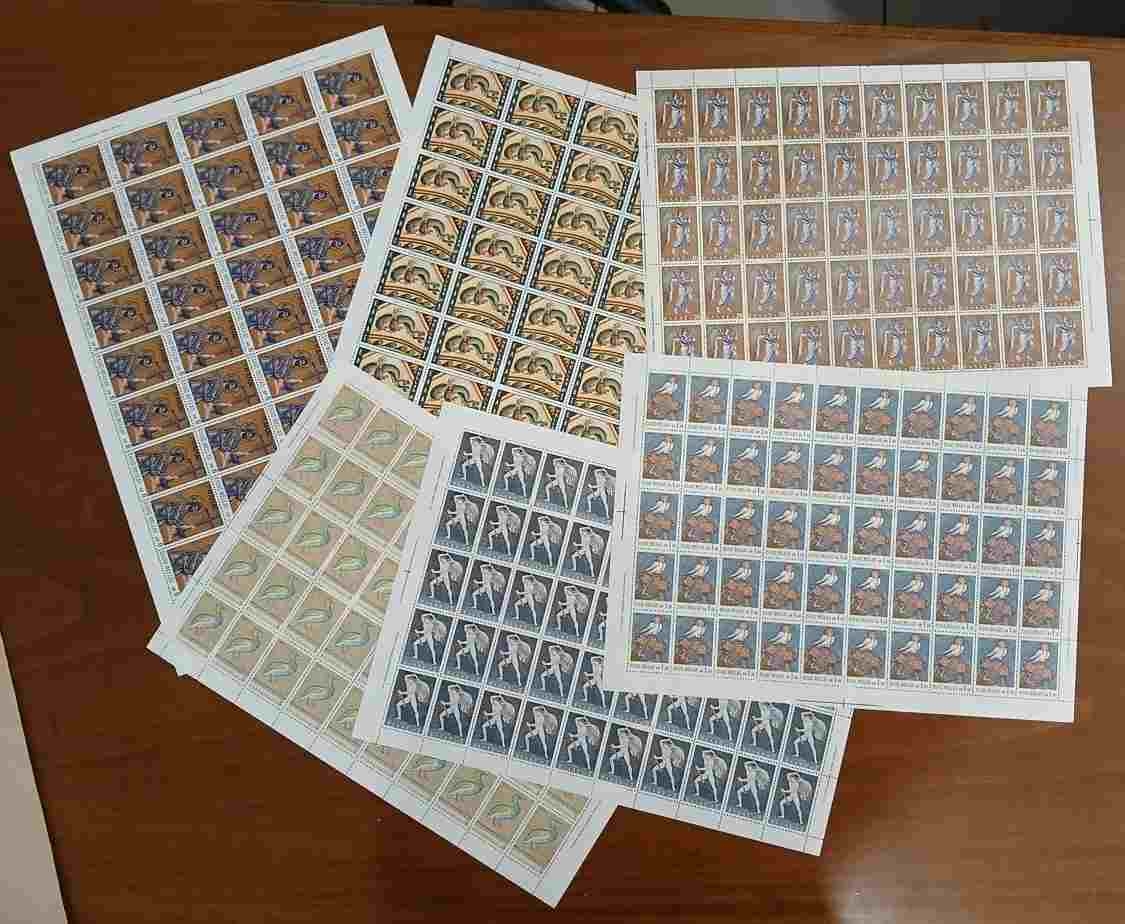 Lot0997 - ΕΛΛΑΔΑ 1969 πλήρης σειρά σε φύλλα των 50 γραμματοσήμων αναμνηστική έκδοση για την Ελληνική Τέχνη των ψηφιδωτών **