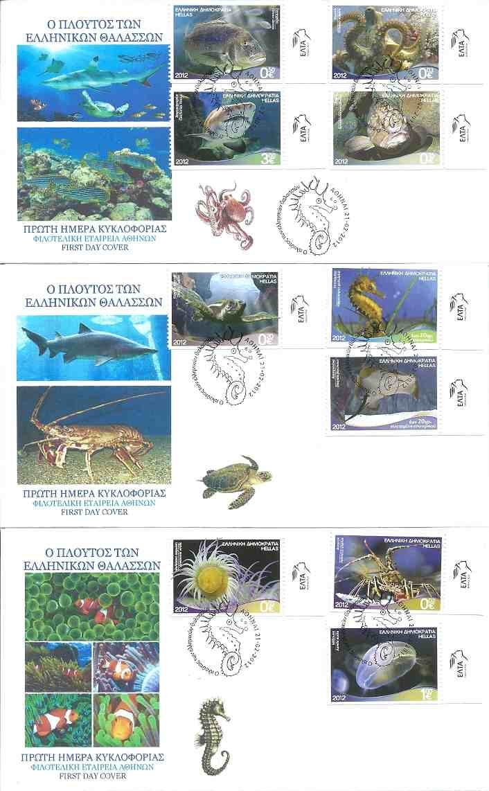 Lot1058 - ΕΛΛΑΔΑ 2012 ΦΠΗΚ ανεπίσημος πλούτος των Ελληνικών Θαλασσών, γραμματόσημα χωρίς οδόντωση ✉