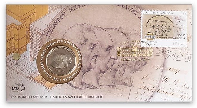 Lot1106 - ΕΛΛΑΔΑ 2016 ειδικός αναμνηστικός φάκελος των ΕΛΤΑ με μετάλλιο, για τα 175 χρόνια της Εθνικής Τράπεζας ✉