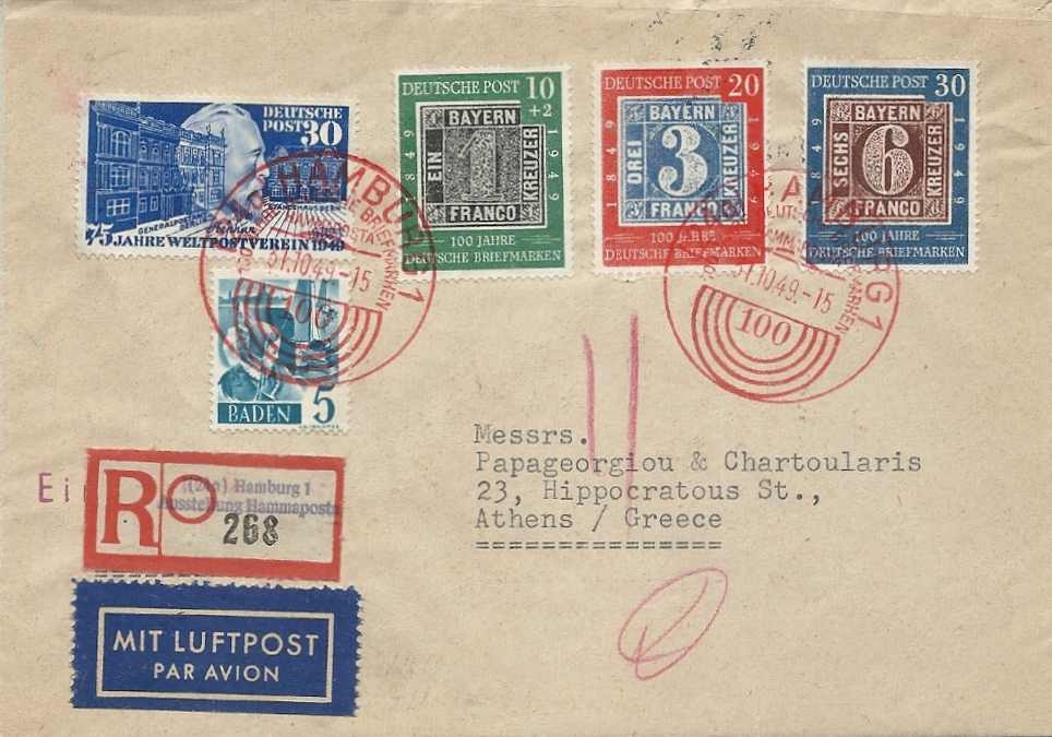 Lot1324 - ΕΛΛΑΔΑ 1949 φάκελλος ταχυδρομημένος συστημένος προς ΑΘΗΝΑ από ΕΛΒΕΤΙΑ - ΖΥΡΙΧΗ. Τιμή καταλόγου Michel : ----€