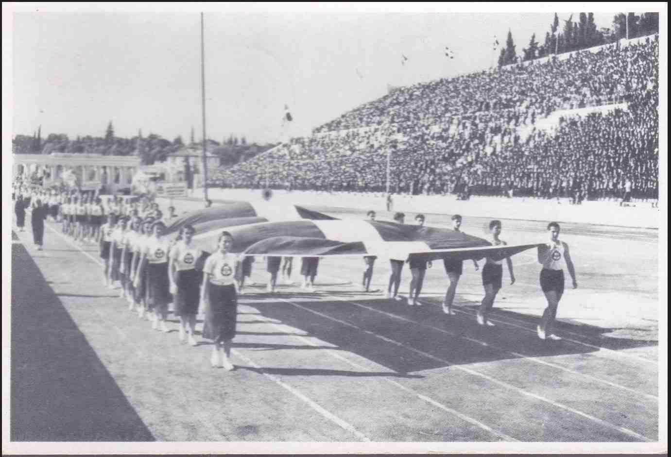 Lot1330 - ΕΛΛΑΔΑ 1940, κάρτα σειράς ΕΟΝ Αθλητική Παρέλαση αθλητών και αθλητριών της ΕΟΝ στο Παναθηναϊκό Στάδιον, στην οπισθία όψη σφραγίδα Ολυμπίας.