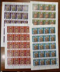 Lot1636 - ΚΥΠΡΟΣ 1991 πλήρης σειρά σε φύλλα των 20 γραμματοσήμων για τα ψηφιδωτά της Εκκλησίας της Κανακαριάς του χωριού Λιθραγκωμή **