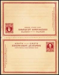 Lot1337 - ΚΡΗΤΗ 1900, διπλό φύλλο επιστολικό Δελτάριο με έντυπο 10λ Βασιλέων Γεωργίου.