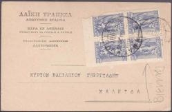 Lot1350 - ΕΛΛΑΔΑ 1928, ιδιωτικό δελτάριο της Λαϊκής Τράπεζας προς Χαλκίδα με τετράδα 25λ, έκδοσης Βιέννης.