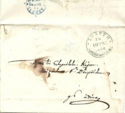 Lot1361 - ΕΛΛΑΔΑ 1850, Πλίκος από Μυστρά ταχυδρομημένος από Σπάρτη (σφραγίδα τύπος ΙΙ) προς Αθήνα με προπληρωμένο τέλος 30 λεπτά