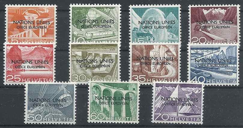 Lot1810 - Ελβετία 1950, Nations Unies, κατάλογος Michel No 1-11 **