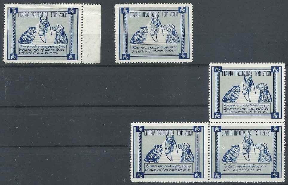 Lot2009 - ΕΛΛΑΔΑ 5 βινιέτες από την Εταιρεία Προστασίας των Ζώων. Σε μπλε χρώμα