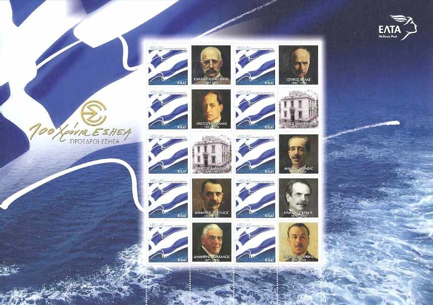 Lot2101 - ΕΛΛΑΔΑ 3 φύλλα με 30 προσωπικά γραμματόσημα για τους Προέδρους της ΕΣΗΕΑ (1914-2014) σε αντίστοιχο, επίσημο, σκληρόδετο φάκελο