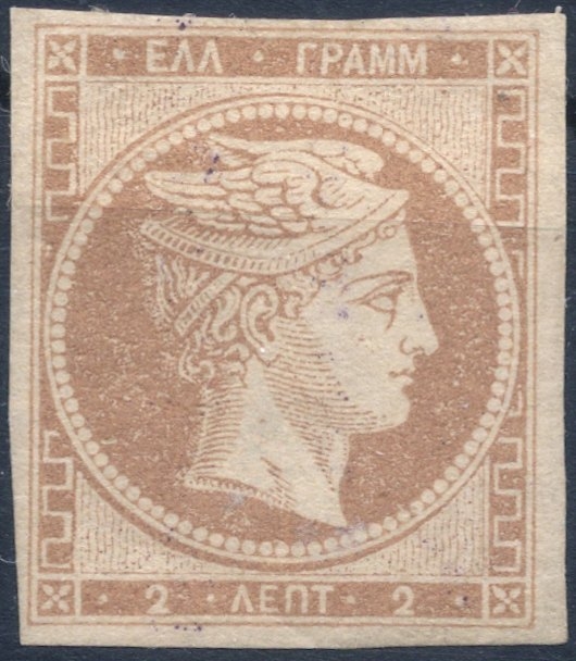 Lot0027 - ΕΛΛΑΔΑ 1861-1862 2 λεπτά σιτόχρωμο σε χοντρό χαρτί (bistre on thin paper) σπάνιο *