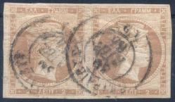 Lot0073 - ΕΛΛΑΔΑ 1862-1867 2 λεπτά καστανοσιτόχρωμο (brown bistre), ζευγάρι με τσάκιση ☉/bl2