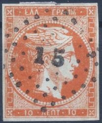 Lot0087 - ΕΛΛΑΔΑ 1862-1867 10 λεπτά κόκκινο-πορτοκαλί (red-orange) ☉