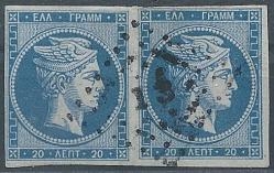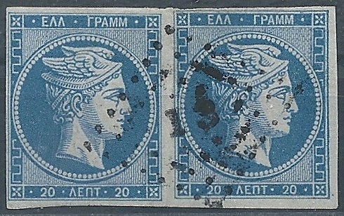 Lot0101 - ΕΛΛΑΔΑ 1862-1867 20 λεπτά μπλε έως πρασινοκυανό (blue to green blue), ζευγάρι ☉/bl2