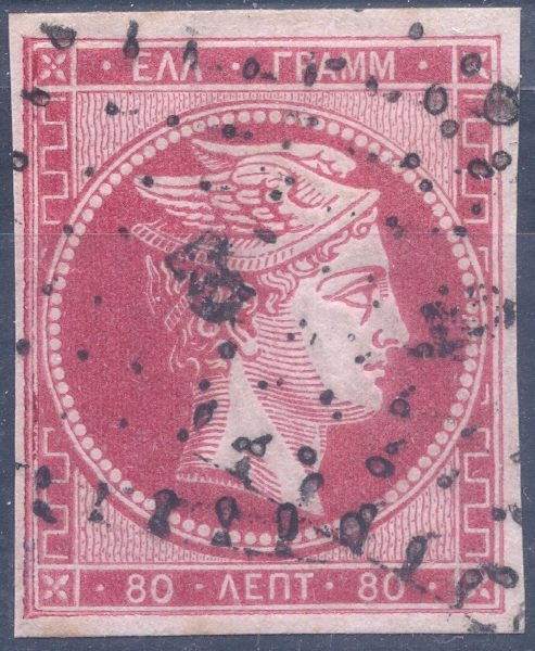 Lot0116 - ΕΛΛΑΔΑ 1862-1867 80 λεπτά καρμινόχρωμο (carmin), με πορτοκαλί ΑΕ (with orange CF) *