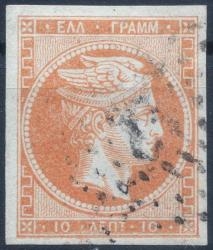 Lot0137 - ΕΛΛΑΔΑ 1868-1869 10 λεπτά κόκκινο πορτοκαλί (red orange) σε χοντρό χαρτί με σφάλμα πλάκας ☉