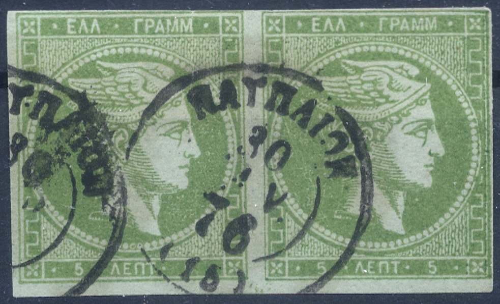 Lot0171 - ΕΛΛΑΔΑ 1871-1876 5 λεπτά φασκομηλόχρωμο (sage green) με σφάλμα πλάκας και ελαφρά τσάκιση ☉/bl2