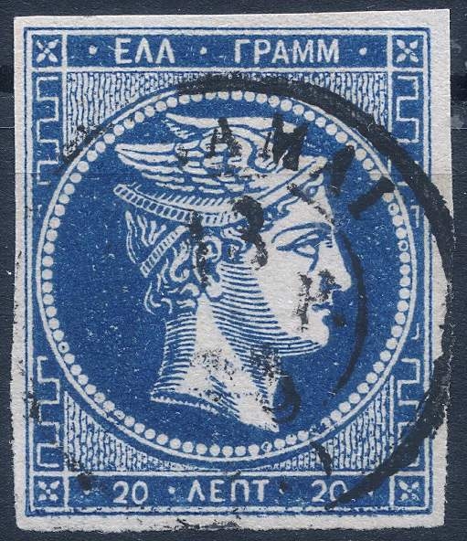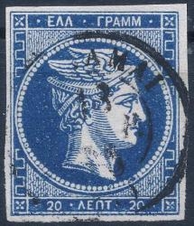 Lot0197 - ΕΛΛΑΔΑ 1871-1876 20 λεπτά μπλε σε μπλε (blue on blue) ☉