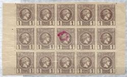 Lot0300 - ΕΛΛΑΔΑ 1889-1890 1 λεπτό, καφέ-γκρι (brown-grey), με λέπτυνση στην μέση, 15άδα, 1η περίοδος **/bl15
