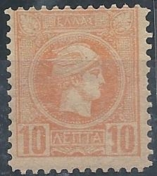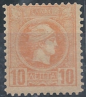 Lot0309 - ΕΛΛΑΔΑ 1889-1890 10 λεπτά, οδόντωση 11 1/2, πορτοκαλί (orange), 1η περίοδος *