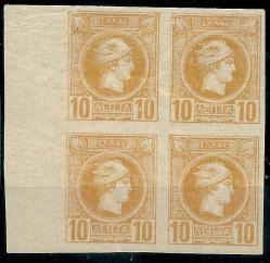Lot0328 - ΕΛΛΑΔΑ 1897-1901 10 λεπτά, κίτρινο-πορτοκαλί (yellow-orange), τετράδα, 3η περίοδος **/bl4