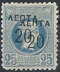 Lot0333 - ΕΛΛΑΔΑ 1900 20 λεπτά/25 λεπτά στο (133a) και διπλή επισήμανση και υπογραφή 'Ζέης', Νέες αξίες σε μικρές κεφαλές