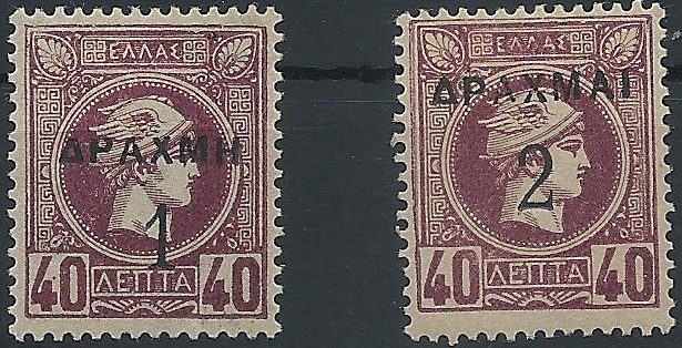 Lot0341 - ΕΛΛΑΔΑ 1900 1 Δραχμή/40 λεπτά και 2 Δραχμές/40 λεπτά, Νέες αξίες σε μικρές κεφαλές *