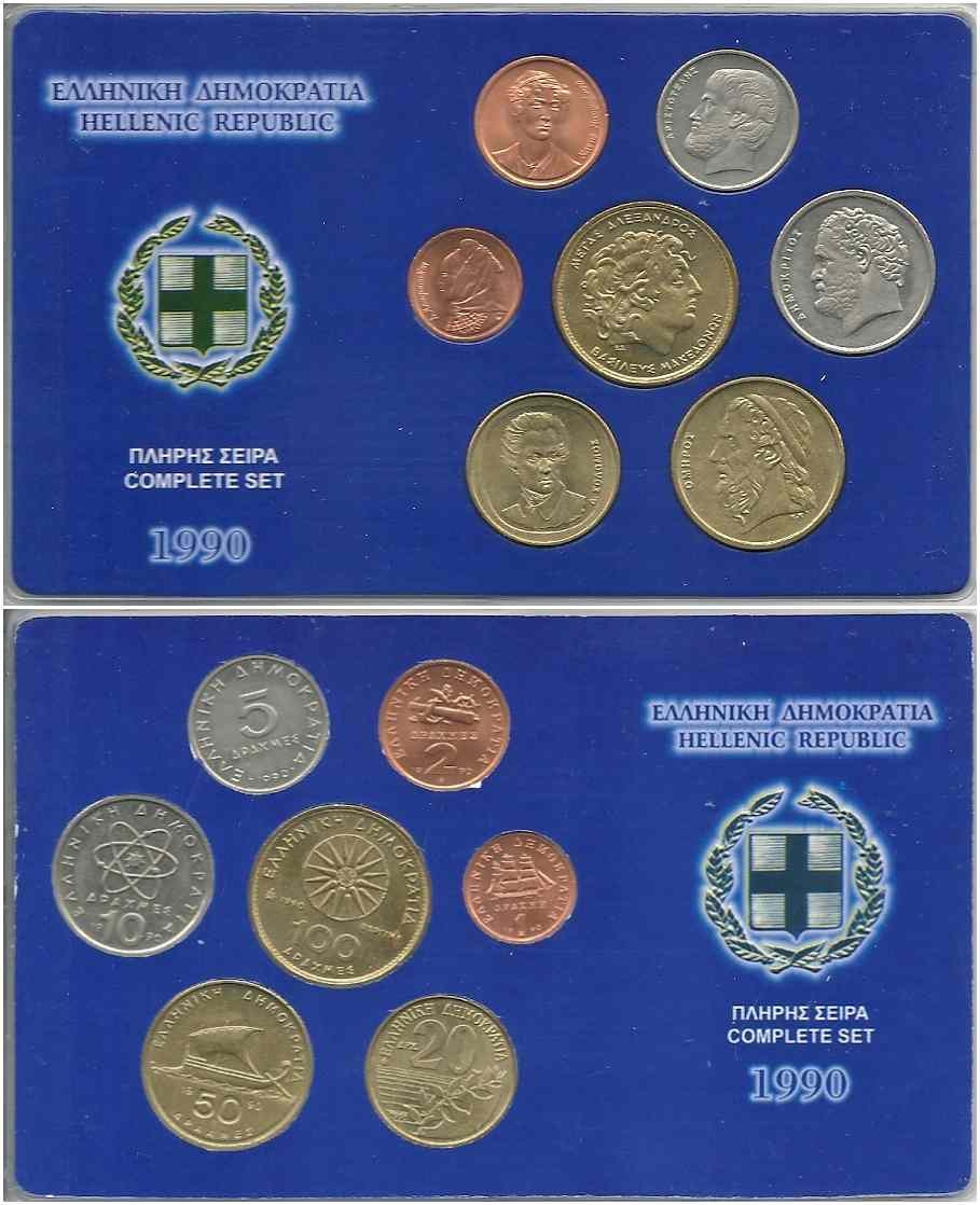 Lot2439 - ΕΛΛΑΔΑ 1990 πλήρης σειρά νομισμάτων ακυκλοφόρητη σε κασετίνα.