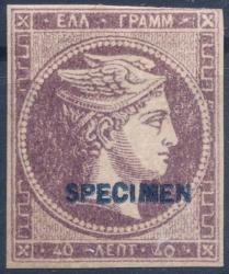 Lot0364 - ΕΛΛΑΔΑ 1880-1886 40 λεπτά καφέ-μωβ (brownish mauve) με επισήμανση SPECIMEN σε χοντρό χαρτί