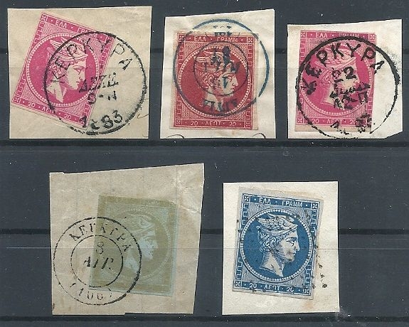 Lot0368 - Λαχνός με Μεγάλες Κεφαλές Ερμή με αποκόμματα φακέλλων - σφραγίδες διαγόρων αξιών